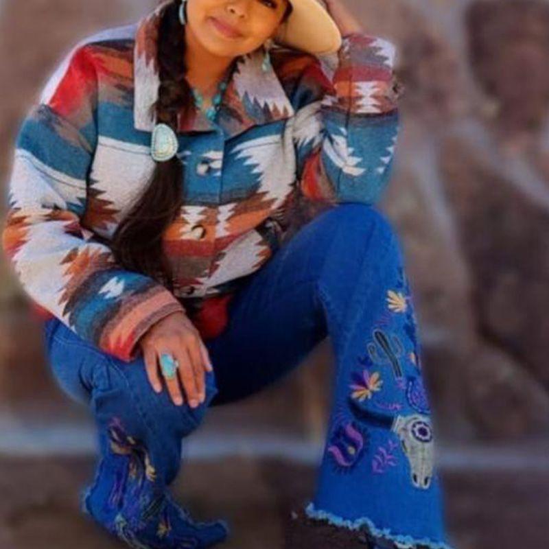 / Native Tribal Western American Aztec Print Pattern Jacket Houndstooth Shacket